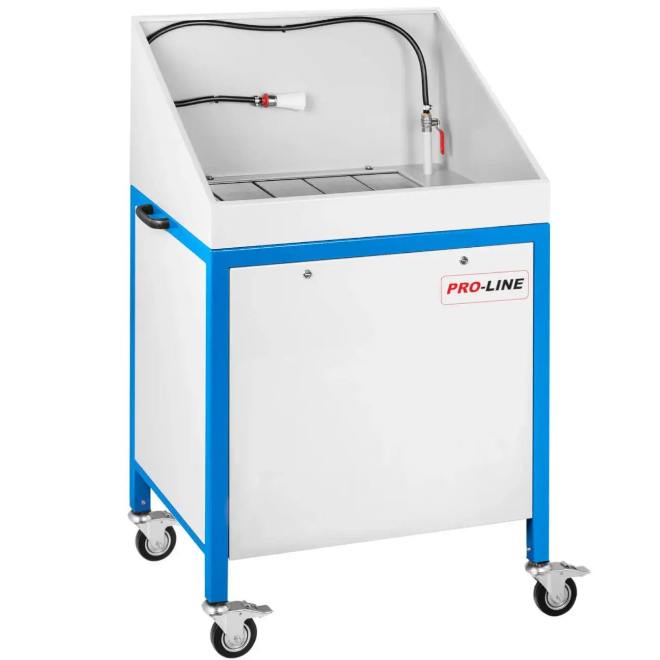 Ekologiczna myjka warsztatowa z zamkniętym obiegiem płynu czyszczącego spełniająca wysokie standardy jakościowe. Myjkę warsztatową wykonano z wysokiej jakości materiałów stalowych i zabezpieczono trwałą proszkową farbą antykorozyjną. Stół do mycia części i urządzeń doskonale spełni swoje zadanie w produkcji przemysłowej wyrobów metalowych, w warsztatach naprawczych i remontowych, oraz wszędzie tam, gdzie proces technologiczny nakazuje odtłuszczenie i mycie powierzchniowe wyrobów.