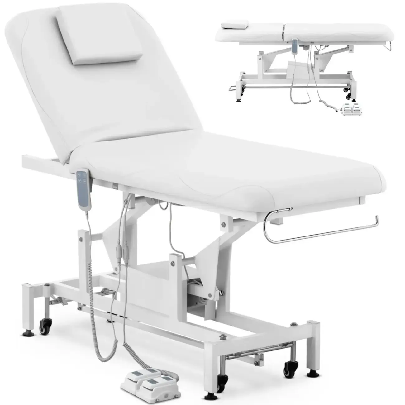 Łóżko do masażu marki physa o regulowanej wysokości jest idealnym wyposażeniem w gabinecie, studio lub w obiektach typu spa wellness. Nadaje się zwłaszcza dla fizjoterapeutów, masażystów lub kosmetyczek. Solidna konstrukcja, regulowany kąt nachylenia oparcia oraz ergonomia sprawiają, że jest idealnie dopasowane do potrzeb zarówno klienta, jak i terapeuty. Łóżko gwarantuje przyjazną dla pleców pozycję oraz duży relaks. Stół do masażu charakteryzuje się bardzo wytrzymałą konstrukcją o dobrej stabilności, a także został wyposażony w pilota zdalnego sterowania, pedał nożny oraz uchwyt na rolkę papieru. Elektryczny stół posiada dwa silniki o łącznej mocy 50 W. Można go indywidualnie wyregulować do wysokości 680-900 mm. Dodatkowo oparcie pochyla się do 60deg;. Pozwoli to znaleźć najlepsze ustawienie dla klientów oraz pracowników. Pozycja siedząca lub leżąca jest opcjonalnie regulowana w zależności od rodzaju zabiegu. Zagłówek posiada zdejmowaną poduszkę. Dzięki piankowemu wypełnieniu tapicerki o różnej grubości (siedzisko: 100 / oparcie: 80 / poduszka: 40 mm) oraz przyjemnemu pokryciu ze skóry syntetycznej oferowane łóżko do masażu jest niezwykle wygodne i gwarantuje wysoki komfort podczas całego zabiegu. Za sprawą zastosowanej ekoskóry stół do masażu można szybko i łatwo wyczyścić. Pokrowiec nie wchłania płynów ani kurzu. Wysokiej jakości stal malowana proszkowo oraz stabilna konstrukcja sprawiają, że ten stół do masażu jest wytrzymały i oferuje maksymalną nośność 200 kg. W razie potrzeby do przesuwania łóżka można użyć czterech kółek. Dodatkową wygodę zapewniają uchwyty na pilota oraz rolkę papieru.