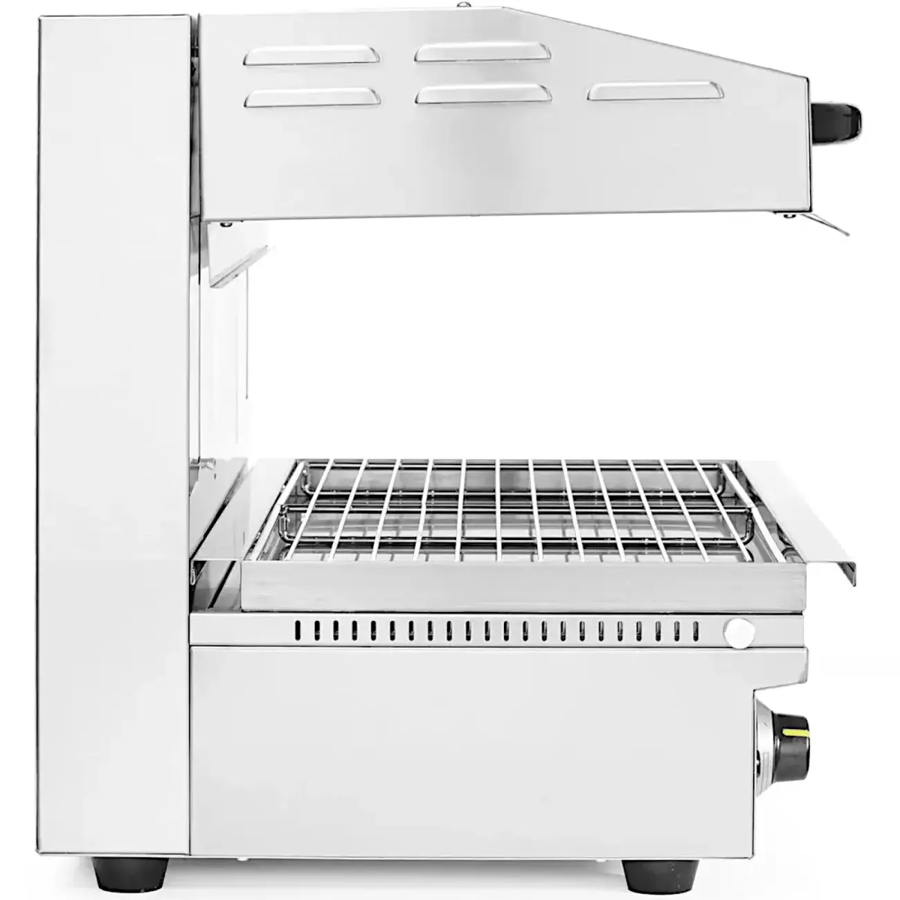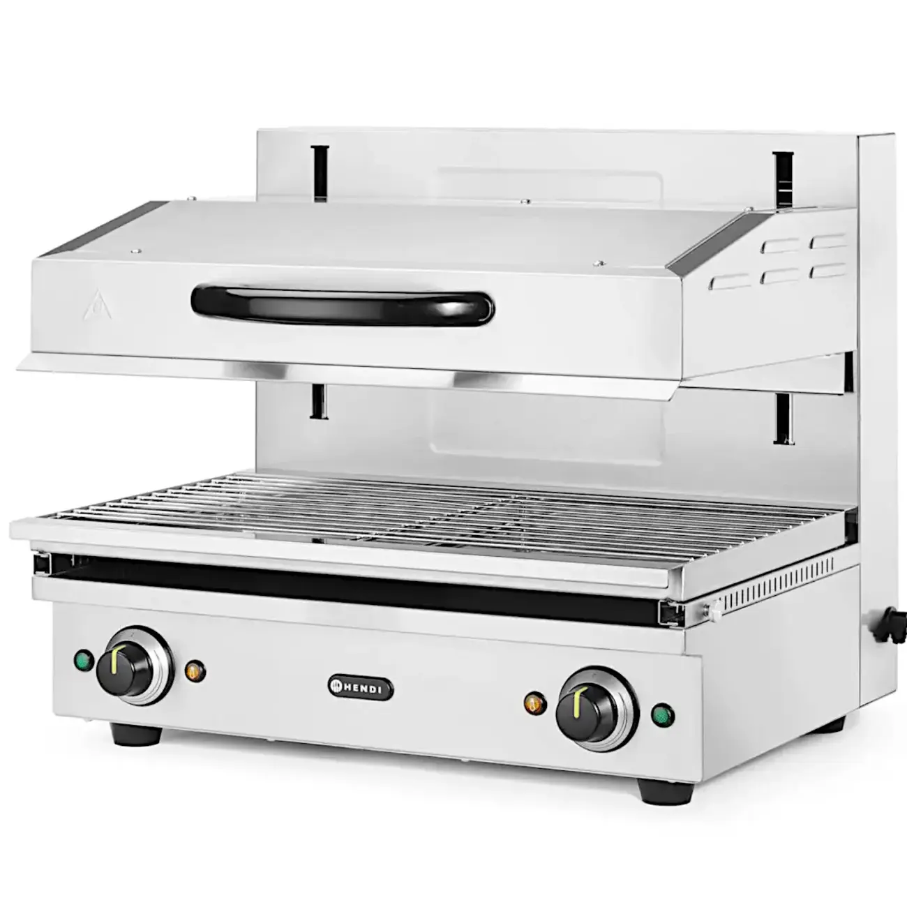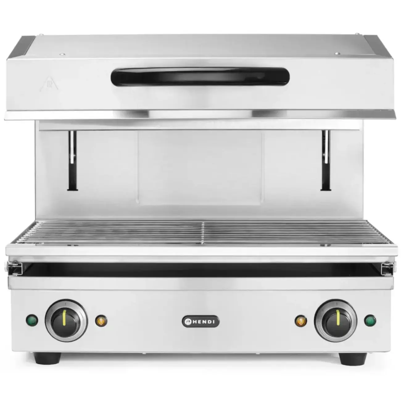 Salamander 600 HENDI umożliwia płynną regulację wysokości za pomocą idealnie działającego systemu podnoszącego w zakresie od 70 do 200 mm, zapewniając precyzyjną kontrolę podczas takich czynności jak grillowanie, opiekanie, topienie sera czy finalne wykańczanie potraw. Mechanizm zębatkowo-łańcuchowy zapewnia niezawodną codzienną pracę, a wyjmowana taca ociekowa i na okruchy z rusztem o wymiarach 590×350 mm ułatwia szybkie i efektywne czyszczenie.