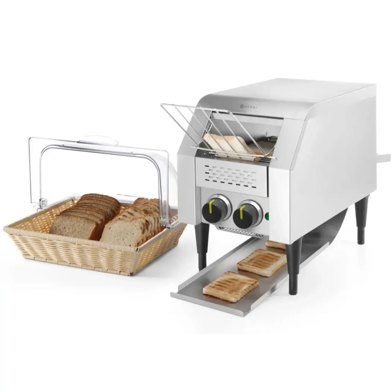 Toster przelotowy pojedynczy o mocy 1340 W marki Hendi to urządzenie, które zostało zaprojektowane z myślą o branży HoReCa. Doskonale sprawdzi się w dużych restauracjach, hotelach i innych punktach gastronomicznych obsługujących dużą liczbę osób. Dwa oddzielne elementy grzewcze umożliwiają ciągłe opiekanie krojonego chleba transportowanego przez urządzenie za pomocą przenośnika z możliwością regulacji prędkości posuwu.