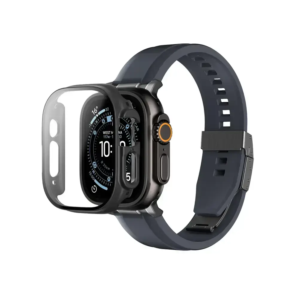 The AmazingThing Radix Glass Screen Protector with FullGuard Case offers comprehensive protection for the 49mm Apple Watch Ultra 3. The combination of 9H tempered glass and a protective frame provides full coverage against scratches, impacts, and everyday damage. The ultra-thin design maintains touch sensitivity, while the anti-fingerprint coating makes the surface easy to clean. The case is compatible with wireless charging and does not affect the operation of buttons or the crown.