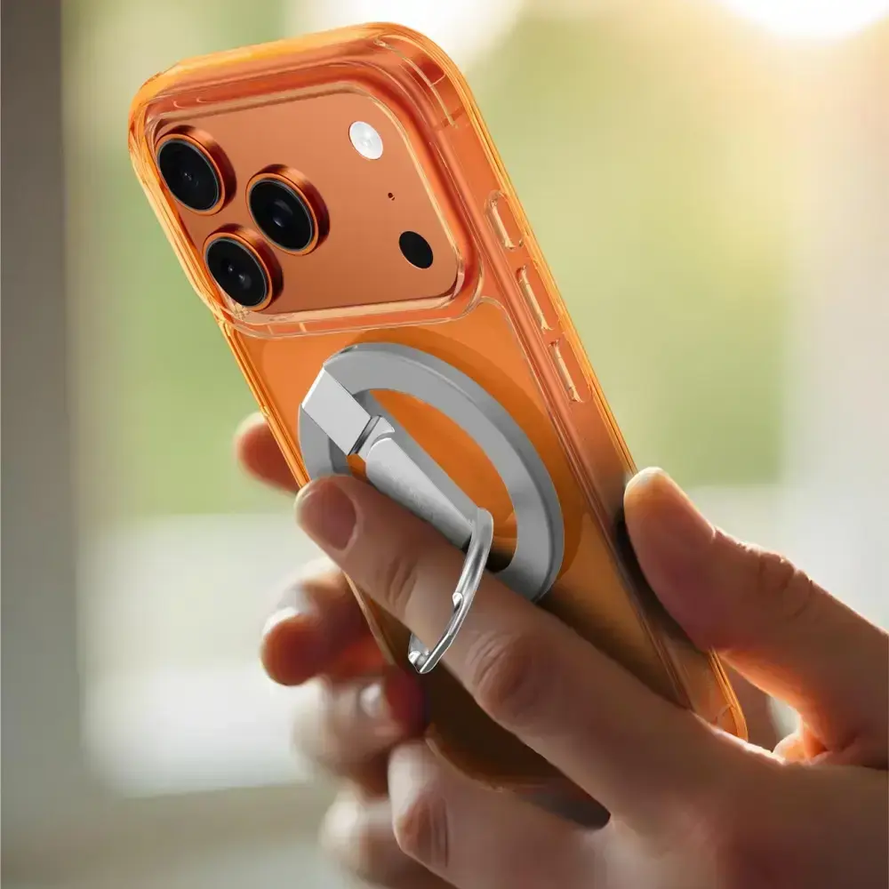 The AmazingThing Minimal Mag case combines minimalist style with reliable protection. The transparent, slightly orange-tinted design showcases the phone's design, while the slim build doesn't add bulk. X-CUSHION PRO 7 technology absorbs shock and disperses impact energy, while 3.6m drop protection provides added safety. The case supports MagSafe technology, allowing you to use chargers and accessories without removing the case. A strap attachment enhances everyday convenience, and the discoloration-resistant material maintains its aesthetic for a long time.