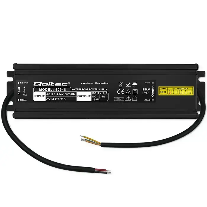 Qoltec LED Driver IP67 150W | 12V | 12.5A | Waterproof | Black