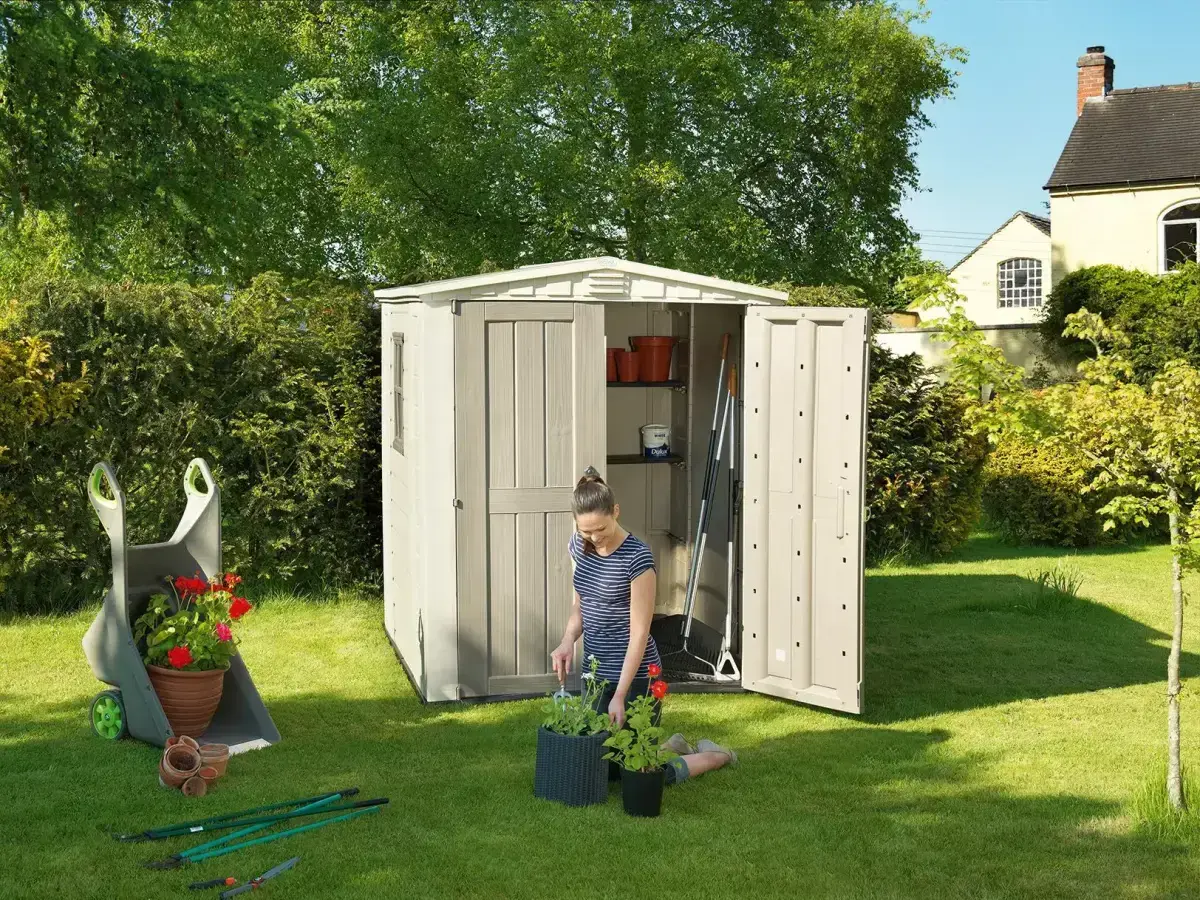 Ietilpīgais Factor 6x6 dārza šķūnis der ne tikai dārzkopības piederumiem, bet arī mazākām atpūtas iekārtām, kā arī mājsaimniecībai svarīgiem instrumentiem un priekšmetiem. Produkts ir izgatavots no augstas kvalitātes plastmasas materiāliem, tāpēc tas neprasa apkopi, nerūsē, nav pakļauts pārklājuma vai materiāla sabojāšanās procesiem.