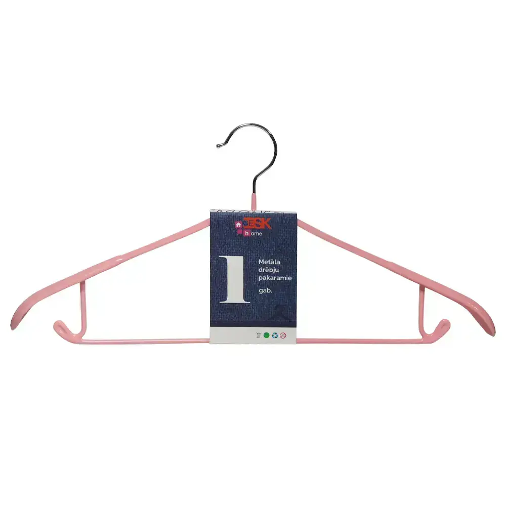 BESK metāla drēbju pakaramais ar rozā PVC pārklājumu ir praktisks un izturīgs risinājums dažādu apģērbu uzglabāšanai skapī. Izturīgais metāla rāmis apvienojumā ar PVC pārklājumu pasargā apģērbu no skrāpējumiem un palīdz novērst noslīdēšanu, nodrošinot kārtību garderobē. Pakaramais piemērots gan kreklu, gan bikšu vai citu apģērbu kārtošanai. Izmērs 40 x 20 cm.