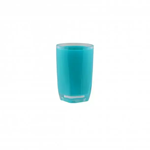 Klasiska glāze zobu birstēm, zobu pastai un citiem piederumiem. Izgatavota no zilas dubultsienu plastmasas. Izmērs Ø 7.5 cm, augstums 11.5 cm.