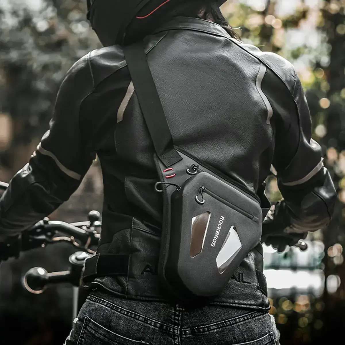 The Rockbros motorcycle bag is an irreplaceable companion on every dynamic route - practical, light and safe. Its thoughtful shape and functionality have been designed with motorcyclists, cyclists and all active users in mind, who need convenient access to the most necessary things at any time. Made of durable TPU 600D material, it is resistant to abrasions, splashes and damage. The bag offers the possibility of wearing on the thigh, waist or shoulder, and adjustable straps allow for an individual fit to every figure. The interior has been designed with a division into functional chambers, making it easy to keep order. Reflective elements provide additional safety after dark. Regardless of whether you are going to the city, a motorcycle ride or an off-road trip - this bag is comfort and style in one.