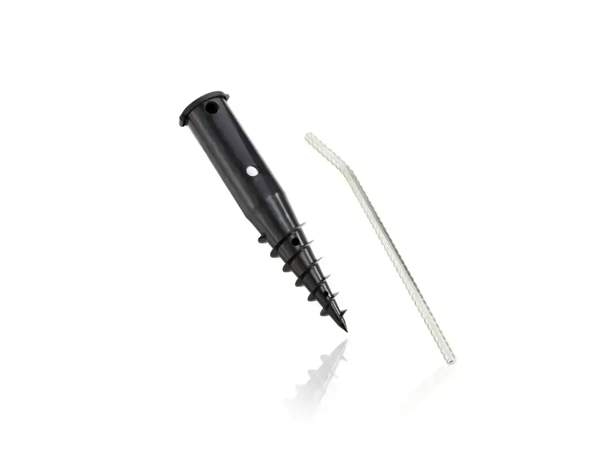 Designed for easy installation of the rotary dryer, which is screwed into the ground without the need for a labour-intensive concreting process. It is suitable for all Leifheit rotary dryers as well as parasols with a central axis diameter of 50 mm. The pin ensures that the dryer is securely fixed. Made of plastic with a metal core that is easy and simple to screw into the ground. When not in use, the pin can be covered to protect it from the weather. When inserted into the pin, the rotary dryer can be rotated for easy hanging of laundry.