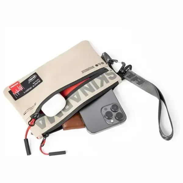 The bag features a detachable crossbody strap and an interchangeable wrist strap, allowing you to adjust how you carry it to suit your individual needs. Practical carabiners and hooks make it easy to swap straps, ensuring maximum comfort. This compact yet functional bag seamlessly blends style with versatility.