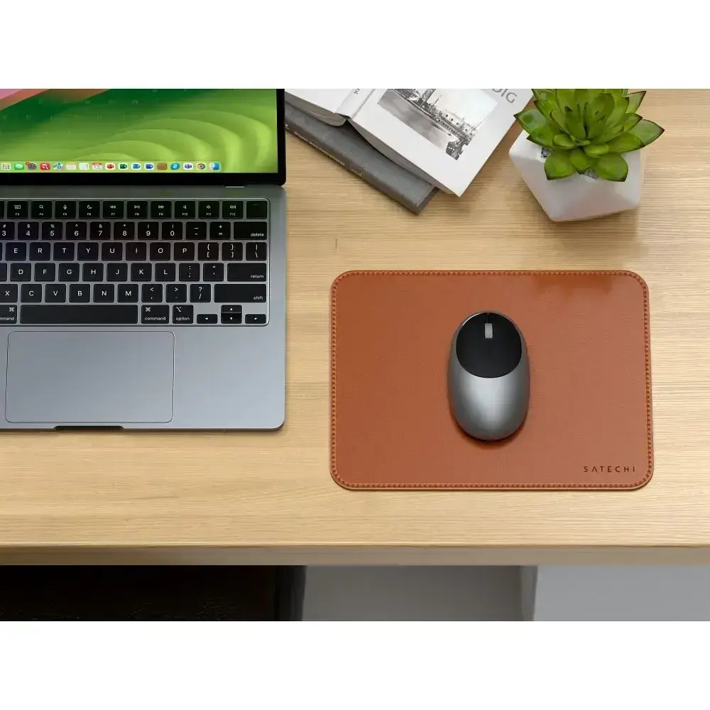 The mouse pad is made from vegan leather, an eco-friendly alternative to traditional leather.