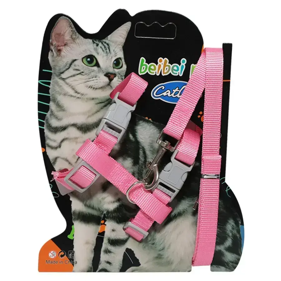 Krūšu siksna kaķiem ar pavadu 120cm, rozā